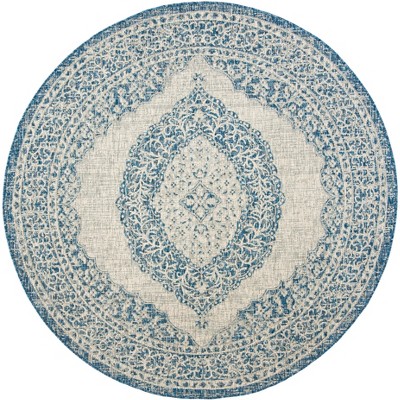 Courtyard CY8734 UV & Stain Resistant Non-Shedding Power Loomed Indoor/Outdoor Area Rug - Light Grey/Blue - 5'3" Round - Safavieh