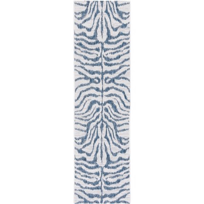 Courtyard CY8734 UV & Stain Resistant Non-Shedding Power Loomed Indoor/Outdoor Runner Rug - Ivory/Navy - 2'3"x8' - Safavieh