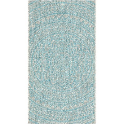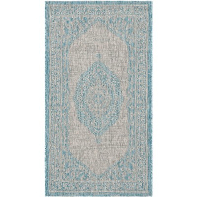 Courtyard CY8736 UV & Stain Resistant Non-Shedding Power Loomed Indoor/Outdoor Accent Rug - Light Grey/Aqua - 2'7"x5' - Safavieh