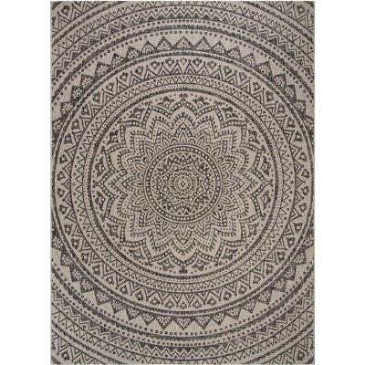 Courtyard CY8736 UV & Stain Resistant Non-Shedding Power Loomed Indoor/Outdoor Area Rug - Light Grey/Black - 9'x12' - Safavieh