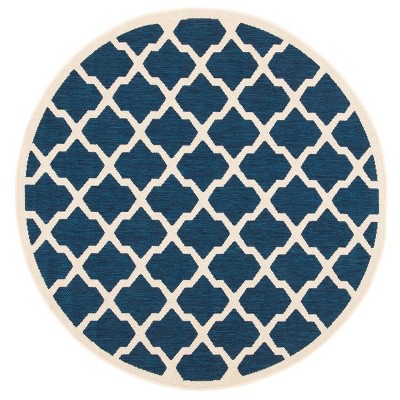 Courtyard CY8751 UV & Stain Resistant Non-Shedding Power Loomed Indoor/Outdoor Accent Rug - Light Grey/Blue - 4' Round - Safavieh