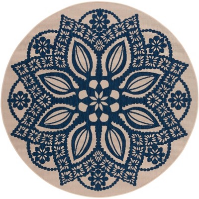 Courtyard CY8763 UV & Stain Resistant Non-Shedding Power Loomed Indoor/Outdoor Area Rug - Navy/Light Grey - 6'7" Round - Safavieh