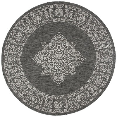 Courtyard CY8871 UV & Stain Resistant Non-Shedding Power Loomed Indoor/Outdoor Area Rug - Black/Beige - 6'7" Round - Safavieh