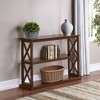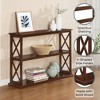 Elevate your home’s style and organization with the Coventry Entryway Hall Console Table with Shelves by Breighton Home. Designed with a blend of farmhouse warmth and transitional flair, this versatile table features eye-catching X-frame side panels and elegant beveled edges for a refined yet rustic appeal. A generous tabletop offers space to showcase décor, while two spacious lower shelves provide the perfect spot for organizing baskets, books, or everyday essentials. Whether placed in an entryway, hallway, living room, dining area, bedroom, or foyer, this multifunctional piece brings charm and utility to any setting. Built from a combination of solid and manufactured wood, it’s finished in a durable, non-lead-based paint and topped with a rich veneer for lasting beauty. Lightweight yet sturdy, this console is easy to relocate and effortless to maintain. Complete your space by coordinating with other stylish pieces from the Coventry Collection by Breighton Home, each sold separately.