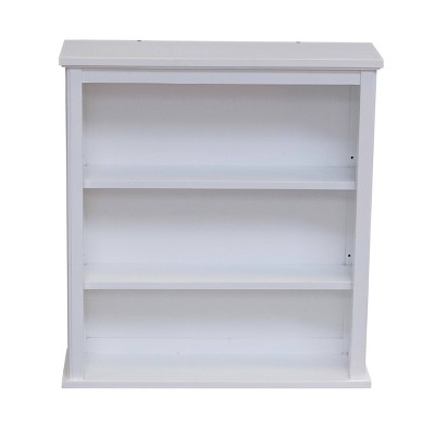 Bring style and organization to your bathroom. This collection works in a range of decorating styles- from traditional to modern with its clean lines and decorative side-element. Wood construction with a white, painted finish, these pieces are designed to create and maximize bathroom storage. This wall cabinet adds functional style to any room. Hide clutter behind the stylish cabinet doors. Perfect for storing bathroom toiletries and necessities, and displaying your favorite home decor pieces on the open shelf below. Bath collection is moisture resistant.