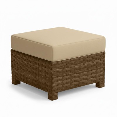 Covers&All Malibu Ottoman with Java Flat Wicker and Sunbrella Cushion