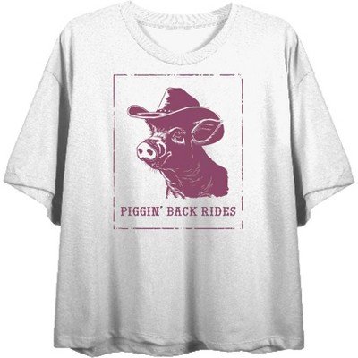 • CUSTOM DESIGNED: This humorous cowboy apparel features a big, bold graphic of a pig wearing a cowboy hat alongside the words "Piggin' Back Ride" - an eye-catching image that has been professionally printed for long-lasting print quality.