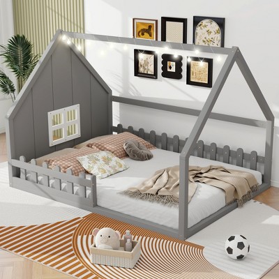This full-size house bed transforms bedtime into an adventure with its delightful window and fence details. The rustic wooden frame creates a cozy cottage atmosphere that sparks imagination while providing a secure sleep space. Children will love their magical retreat that doubles as both sleeping area and daytime play zone.