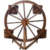 Bring rustic elegance to your space with this unique wagon wheel planter featuring four metal-ringed wooden barrels. The authentic farmhouse design creates a stunning display for flowers, succulents, or trailing vines, perfect as a focal point on porches, in sunrooms, or as part of your garden landscape.