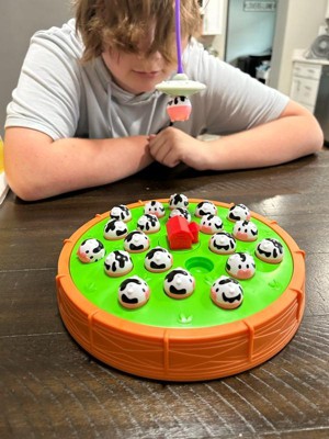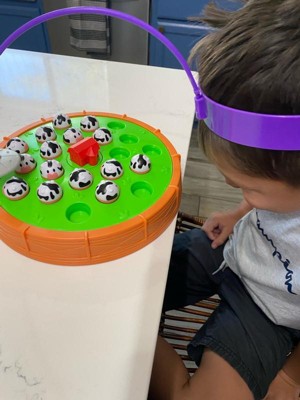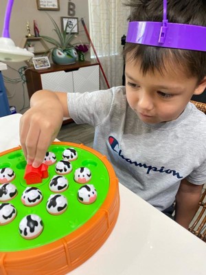 [This review was collected as part of a promotion.] This is a fun quirky game. My 4 year old thought it was really fun, having to capture the cows with his magnetic headband. I think it helps develop eye coordination since it also is rotating. Fun idea