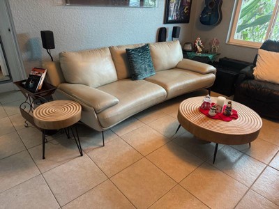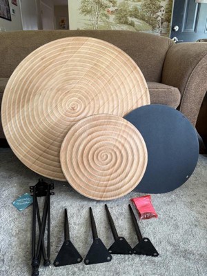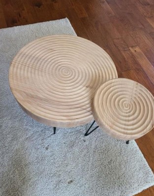 [This review was collected as part of a promotion.] These two tables are absolutely stunning! The unique ripple-carved wood tops immediately stand out and add a modern, artistic touch to the room. The craftsmanship is excellent — the wood feels solid and high-quality, and the carved concentric pattern gives each piece a very luxurious, sculptural look. The larger coffee table and the smaller side table complement each other beautifully. Together, they create a cohesive, contemporary vibe while still feeling warm and natural thanks to the wood finish. The metal legs are sturdy and stylish, giving the tables a clean mid-century modern feel without taking attention away from the eye-catching tops. What I love most is how versatile these tables are. They work perfectly in both modern and cozy spaces, and they instantly elevate the style of the living room. They’re also functional — the height is comfortable, and the surfaces are spacious enough for décor, books, candles, or everyday use. Overall, these tables are a gorgeous combination of design, quality, and practicality. They truly transform the space and make it feel more curated and inviting. Highly recommended! Very lightweight and easy to put together.