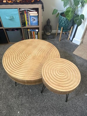 Bring natural charm and functional elegance into your home with the COZAYH 2-Piece Round Nesting Coffee Table Set. Perfectly suited for modern farmhouse interiors or cozy boho styles, this wooden table set adds warmth and rustic appeal to your living room or bedroom. Each piece showcases an intricate handcrafted wood ring pattern that enhances the character of your space, making it ideal for use as a coffee table, side table, or decorative centerpiece.