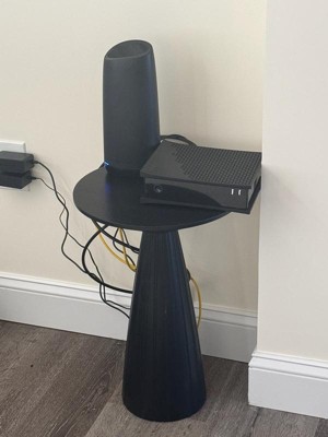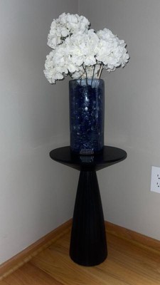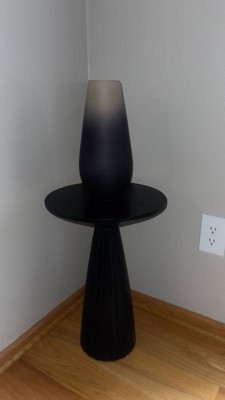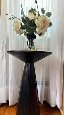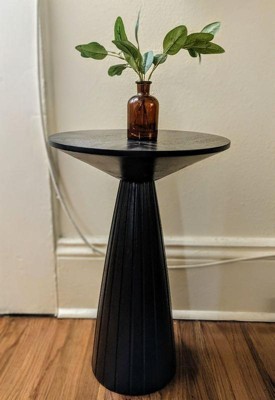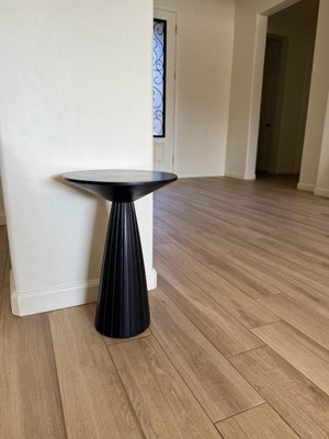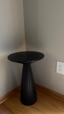 [This review was collected as part of a promotion.] I really like this black Pedestal table. Its sleek design and size is perfect for holding drinks or displaying plants or any small common household item to accent the room. There was barely any assembly required, making it quickly stylistic and frustration-free. My only small complaint is its pedestal base being lighter in weight, making it easily knocked by rambunctious children and pets.