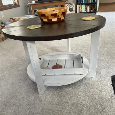 COZAYH Rustic Farmhouse Large Round Wood Coffee Table with Storage Shelf for Living Rooms or Apartment Spaces, Quick and Easy Assembly, Brown