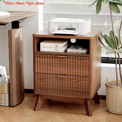 The COZONY modern nightstand with USB charging station offers style and convenience. It features 2 spacious drawers and an open shelf to store books, electronics, and personal items. Built-in USB ports and outlets allow easy charging of phones, tablets, and lamps right at your bedside. The fluted wood design fits seamlessly into bedrooms, living rooms, or apartments.Package Included: