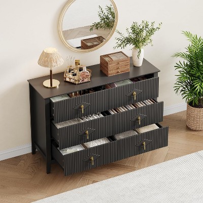COZONY 2-Pack Modern Fluted Nightstand w/ 2 Drawers Gold & Wood Side Table for Bedroom, Apartment Elegant Design