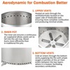 This portable fire pit is perfect for gatherings of 4 to 10 people, making it an ideal choice for bonfires and terrace gatherings with family and friends. The dancing flames create a warm, inviting atmosphere, enhancing your outdoor experience.Feature:Upper Vents: Heated air escapes through ventilation holes located on the upper side of the double wall, promoting more complete combustion and significantly reducing fume production. This design helps create a cleaner and more efficient burning experience.Inner Pot: The inner pot is designed to ensure a continuous flux of air while allowing waste ash to fall directly into the ash tray. This feature enhances efficiency, enabling wood to burn more effectively compared to traditional fire pits.Bottom Vents: Cold air enters through the bottom vents, supplying the fire with ample oxygen. A portion of this incoming air travels between the two layers of the fire pit, where it is heated, facilitating secondary combustion for a hotter and more efficient burn.Convenient Carrying Handles: The additional handles make it effortless to carry the stove, providing a secure grip for convenient transport.
