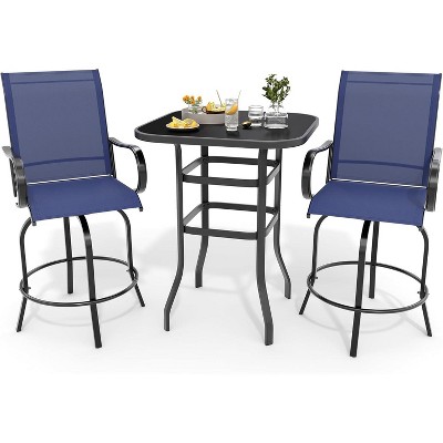 This compact 3-piece patio conversation set includes comfortable seating and a durable tempered glass table, perfect for garden, balcony, or living room arrangements. Designed for intimate gatherings and relaxation, the set combines weather-resistant materials with elegant styling. The tempered glass top ensures easy maintenance while providing a modern aesthetic for various indoor and outdoor settings.