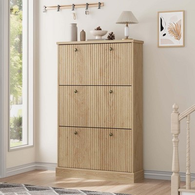 COZONY 31.5" Fluted Shoe Cabinet with 3 Flip Drawers, Slim Wooden Shoe Storage with Adjustable Shelves for Entryway