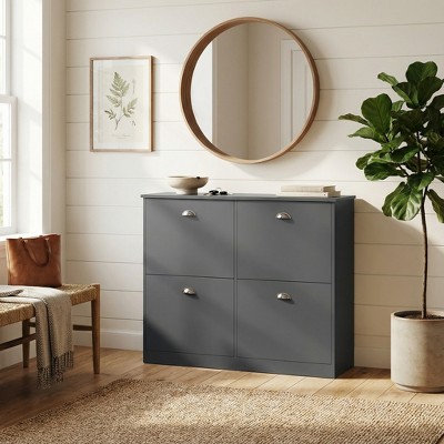 Four Smooth-Gliding Drawers: Spacious drawers with metal runners offer quiet, easy-access storage.
