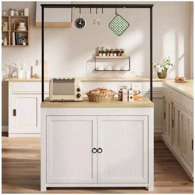 The COZONY 42" Kitchen Island blends durability, function, and style to enhance any kitchen or dining space. Designed with a heavy-duty 30mm wood countertop, it provides a reliable surface for meal preparation, dining, or even working from home. Its wood construction supports up to 400 lbs, accommodating heavy appliances with ease. Smart storage solutions include 3-tier open shelves and 5 hooks to keep utensils, cookware, and spices organized, while a removable top shelf transforms into a microwave stand or baker’s rack. Compact yet spacious, this island also features hidden storage for 2 stools, making it perfect for small spaces.