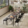 This 43.3-inch dining table set is perfect for apartments, studios, or small homes. The 3-piece set includes a sturdy rectangular table and 2 upholstered benches, providing comfortable seating for up to 4 people. Its heavy-duty metal frame ensures stability, while the soft padded benches offer both comfort and durability. The benches conveniently tuck under the table to save space when not in use, making it ideal for compact dining areas. Simple to assemble, this dining room set combines modern style with practical functionality.