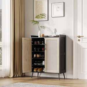 COZONY 5-Tier Rattan Shoe Cabinet with Adjustable Shelves & Metal Legs, Farmhouse Entryway Organizer