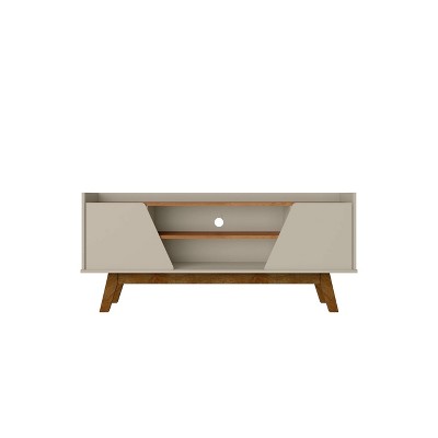 Ample Storage Space - Includes 2 side cabinets with 3 adjustable shelves, central drawer, and open shelves for media devices