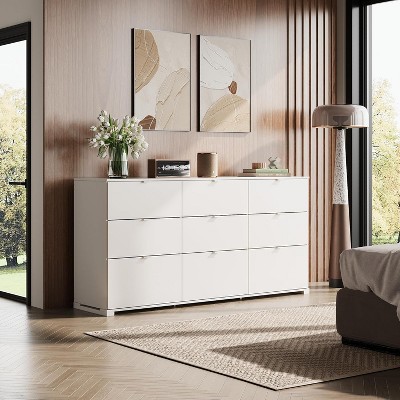 COZONY 63" 9 Drawer Dresser, Wide Drawer Storage Organizer for Bedroom, Hallway & Living Room, Dressers & Chests of Drawers, White