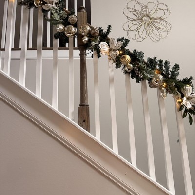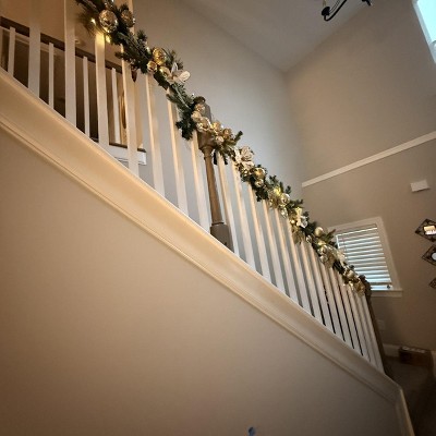 COZONY 6FT Prelit Christmas Garland with Timer, 20 LED Lights with Gold Balls & Magnolia Flowers for Fireplace Indoor Outdoor Decor
