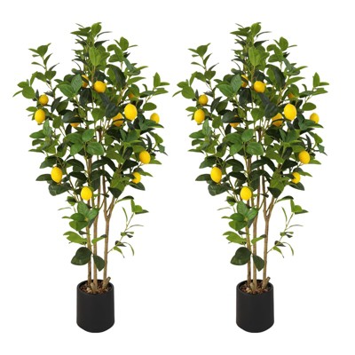 COZONY Artificial Ficus Tree Set, Faux Potted Plants w/ Realistic Leaves & Trunk, Indoor Outdoor Decor, Multi-Height Options, No Maintenance Needed