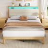 COZONY Bed Frame with RGB LED Lights and 2-Tier Storage Headboard, Modern Platform Bed for Bedroom