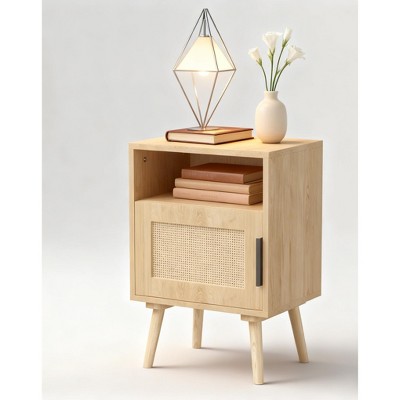COZONY Boho Nightstand,16 Inch Rattan Nightstand with Drawer,Bedside Table for Bedroom | Sturdy Legs & Wood Top | Small Accent Cabinet