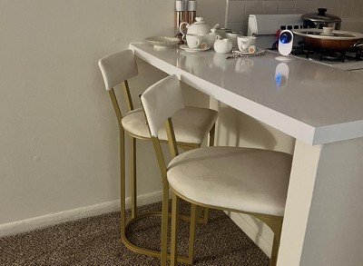 Elevate your kitchen or home bar with the COZONY Counter Height Bar Stools Set of 2. These stools masterfully combine a sleek, modern design with practical comfort, making them the perfect addition to any contemporary living space.Designed with user comfort as a priority, these bar stools feature a gracefully curved T-shaped backrest that conforms to the body's natural shape, providing outstanding ergonomic support. The seats are generously padded with high-density foam and upholstered in a soft, easy-to-clean gray velvet, ensuring they remain a stylish and hygienic choice for daily use.The robust all-metal frame is built to last, providing a secure feel. The U-shaped base and non-slip foot pads guarantee stability and protect your flooring from scratches. The integrated horizontal footrest offers a comfortable place to rest your feet, making these stools ideal for long conversations or leisurely meals.