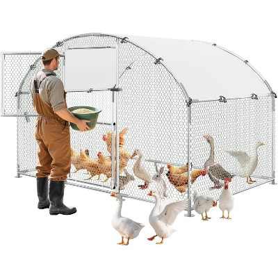 This substantial walk-in poultry enclosure measures 120 or 160 inches long by 41 inches wide and high, providing generous space for multiple animals. The heavy-duty metal construction includes a waterproof and UV-resistant cover that protects against harsh weather. Suitable for chickens, ducks, and rabbits with secure, predator-resistant design. The walk-in accessibility simplifies cleaning and maintenance while the enclosed run offers safe outdoor roaming. Perfect for backyard enthusiasts and small-scale farm operations.