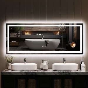 Enhance your bathroom with this LED Bathroom Mirror with Lights, featuring both front and back illumination for perfect lighting balance. The dimmable touch control allows easy brightness adjustment, while the anti-fog function keeps the mirror clear even after a hot shower. Designed for horizontal or vertical mounting, this shatter-proof smart mirror also includes a memory function, automatically restoring your last brightness setting. Crafted from high-quality, explosion-proof glass, it ensures durability, safety, and elegance for your modern bathroom decor.