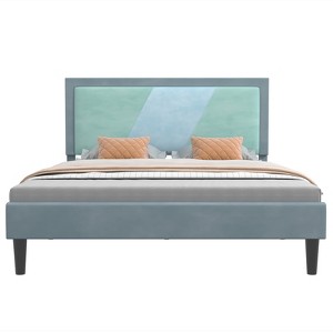 COZONY Light Blue Tufted Platform Bed, Adjustable Height Headboard Velvet Mix Color Upholstery