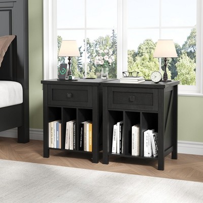 COZONY Modern Fluted Nightstand with Charging Station, 2-Drawer Bedside Table with USB Ports for Bedroom and Apartment