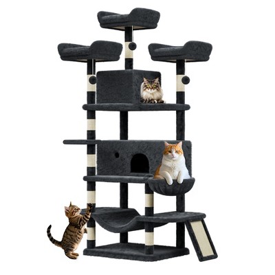 Give your cats the perfect place to play, climb, rest, and scratch with the COZONY Multi-Level Cat Tree Tower. Designed with sturdy construction and plush comfort, this heavy-duty cat furniture provides a safe and fun indoor playground for kittens and adult cats alike. Equipped with multiple levels, sisal-covered scratching posts, cozy condos, plush perches, hammocks, baskets, and dangling toys, this cat tower encourages exercise, satisfies scratching instincts, and offers endless entertainment. Its durable structure ensures stability, while the soft plush fabric keeps your feline friends cozy and relaxed. Perfect for multi-cat households.