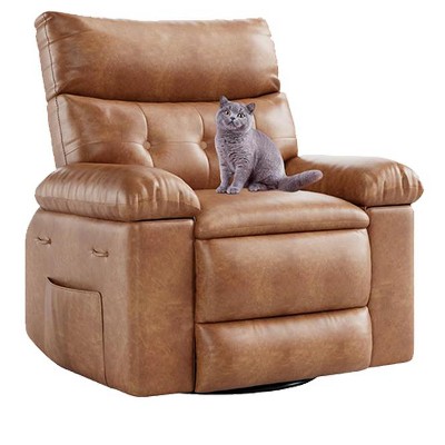 COZONY Oversized Recliner Chair, Manual Leather Recliner with Lumbar Support and Side Pocket for Living Room