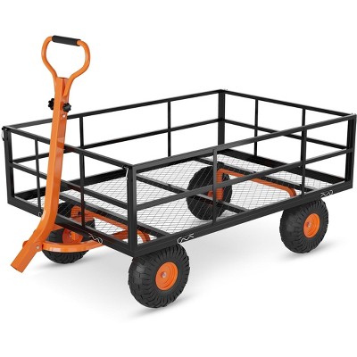 Poly Dump Cart, Heavy Duty Garden Wagon, 10" No-Flat Tires, Quick Release, Adjustable Handle, Utility Yard Cart for Landscaping