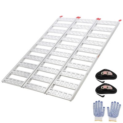 Features: Multiple Length Options: Available in 6FT, 8FT, 9FT, and 10FT configurations to match different elevation needs High Weight Capacity: Supports up to 600 pounds with heavy-duty aluminum construction Safety-First Design: Non-skid traction surface and reflective strips ensure secure day and night use Included Transition Plate: Smooth entry/exit transition reduces bumps and improves wheelchair accessibility Portable & Lightweight: Aluminum material allows for easy transport, setup, and storage Package Included: 1 ¡Á Complete Wheelchair Ramp Set