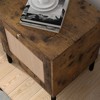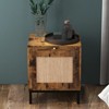 COZONY Rustic Nightstand Side Table with Rattan Door, Storage Shelf, Pull Out Tray End Table for Living Room Bedroomm