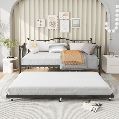 COZONY Twin Daybed with Trundle — Metal Sofa Bed Frame with Charging Station, LED Lights & Pull-Out Design for Bedroom, Living Room