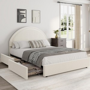 COZONY Twin/Full Upholstered Boucle Bed Frame with Storage Drawers, Round Headboard, Heavy Duty, No Box Spring Needed