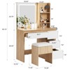 Create the perfect beauty space with this modern vanity desk set. Featuring a lighted mirror, built-in outlets, a cushioned storage stool, 4 spacious drawers, and a dedicated hair dryer holder, it combines style and functionality for an organized and efficient makeup routine. The adjustable lighting ensures flawless makeup application, while the ample storage keeps cosmetics, jewelry, and beauty tools neatly arranged. Ideal for bedrooms or dressing rooms, this vanity desk brings elegance and convenience to daily routines.