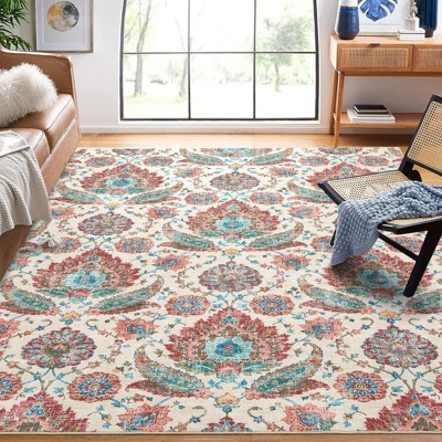 COZONY Vintage Floral Carpet Mat Rug, Washable Non-Slip Low Pile Runner for Hallway Kitchen Entryway Bedroom