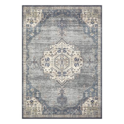 COZONY Vintage Medallion Washable Rug, Non-Slip Low Pile Thin Area Carpet for Living Room Bedroom Office