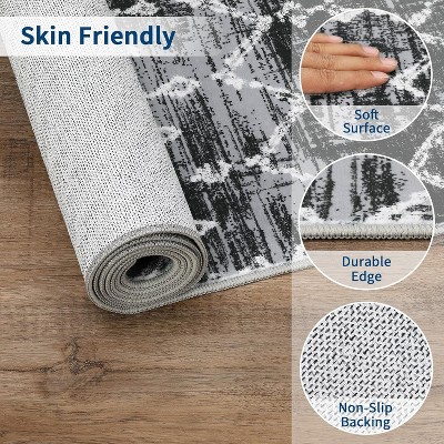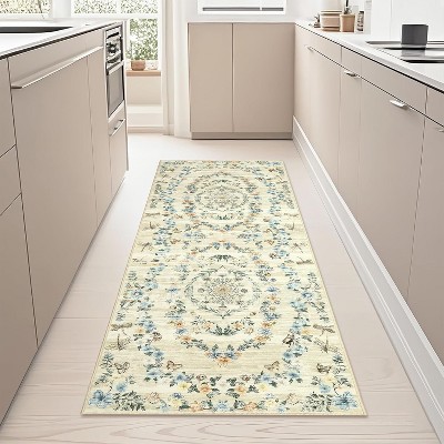COZONY Vintage Washable Accent Rug, Non-Slip Distressed Medallion Carpet for Indoor Living Spaces, Blue tint, 2'x6'