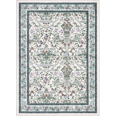 COZONY Washable Area Rug, Folding Floral Print Non-Slip Rug, Easy Clean Floor Mat, Indoor Decor